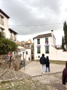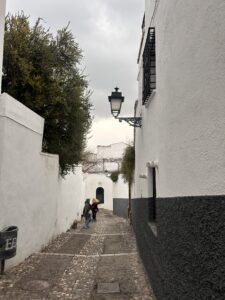 On this, the last full day in Granada, I took a taxi up to the Mirador de San Nicolás in the well-known Albaicín neighborhood. I wanted to admire the whitewashed structures there and see the Alhambra from across the valley after yesterday’s palace tour. The view was everything promised, with the glowing fortress across the hillside, the Sierra Nevada rising quietly behind it.