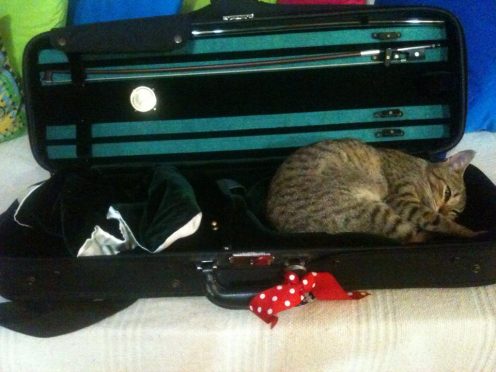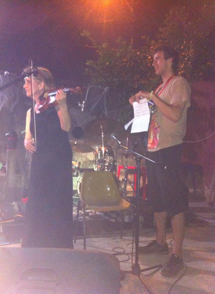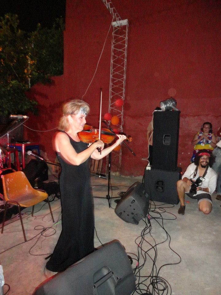 1924351_651534044937659_3199054083982764089_n 10530678_10204481782584149_2725482259128990251_n 10525880_651534058270991_6352923296296973301_n 10538458_651545581603172_5814551238453636758_n 10441371_10204481781584124_8166228420484896574_nSeveral times a year Peace Corps volunteers hold a musical event called “Ahendu” at a club in Asunción.  Most of the music performed is rock, jazz, blues.  I thought it’d be fun to play the violin but wanted to make sure I played something in keeping with the mood of the night.  So, I picked out a piece called “Robot Roll” written by Joe McDermott of Austin, Texas.  It’s the coolest song and luckily, Joe made for me an accompaniment track with his musicians at his recording studio.  At Ahendu we had a great sound system and a DJ who knew his stuff.  At the moment I went onstage and hooked into their system, I knew it was going to be a blast!