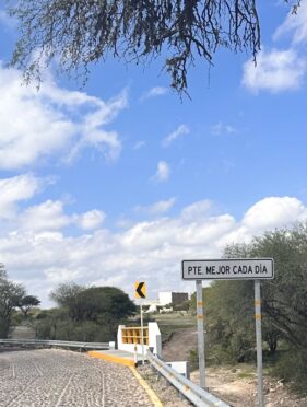 On one of our excursions in Rubble, we were making a trek Lee had already discovered and had wanted to show us. So, down the dirt roads we went, hair flying, holding on, crossing through shallow riverbeds, water splashing up onto us as we went. We came to Puente Mejor Cada Día, a bridge leading towards Presita de Santa Rosa, a sweet little community. You can learn about that bridge and more, here.