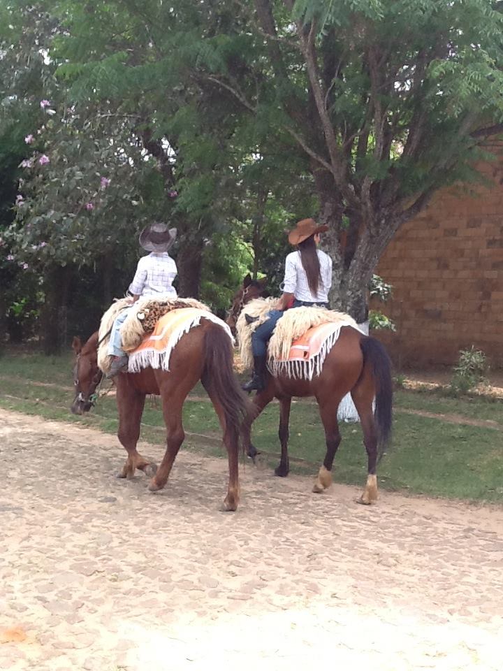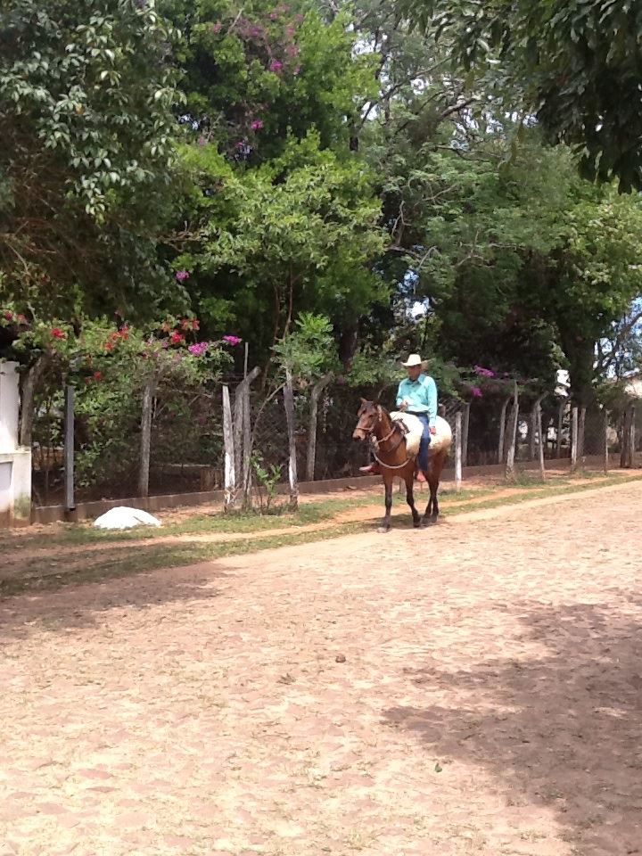 Here in Paraguay, I love seeing horses ambling down the road.  Their owners let them wander the streets of the small pueblos, finding places to chew on grass here and there, sometimes ambling all the way to the other side of town.  At dusk, you see the very adept cowdogs as they rustle the horses down the road, back to the house.  So smart and confident they are at that job.  I can envision their owner motioning to their dog from the front porch rocker…. “it’s time…go get ‘em.”