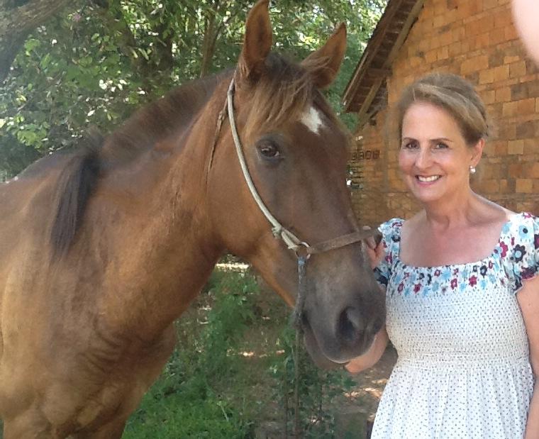 What does barrel racing have to do with my adventures in Paraguay?  It doesn’t.  But, this photo of my friend and hairstylist Rhonda, who lives in Waco, Texas, does.  Here in Paraguay, on my bulletin board, is this same photo of Rhonda with her gorgeous horse, [tooltip text=”Dealer” gravity=”nw”]Take a look at him in the photo above. Really study him. Isn’t he the most beautiful creature. [/tooltip]  It says so many things to me each time I admire it.  It reminds me of sweet friendship and shared stories at my monthly hair appointments as she cut and colored my hair.  But, it reminds me of my roots in more ways than one:  It tells me that I’m a Texas girl, through and through.